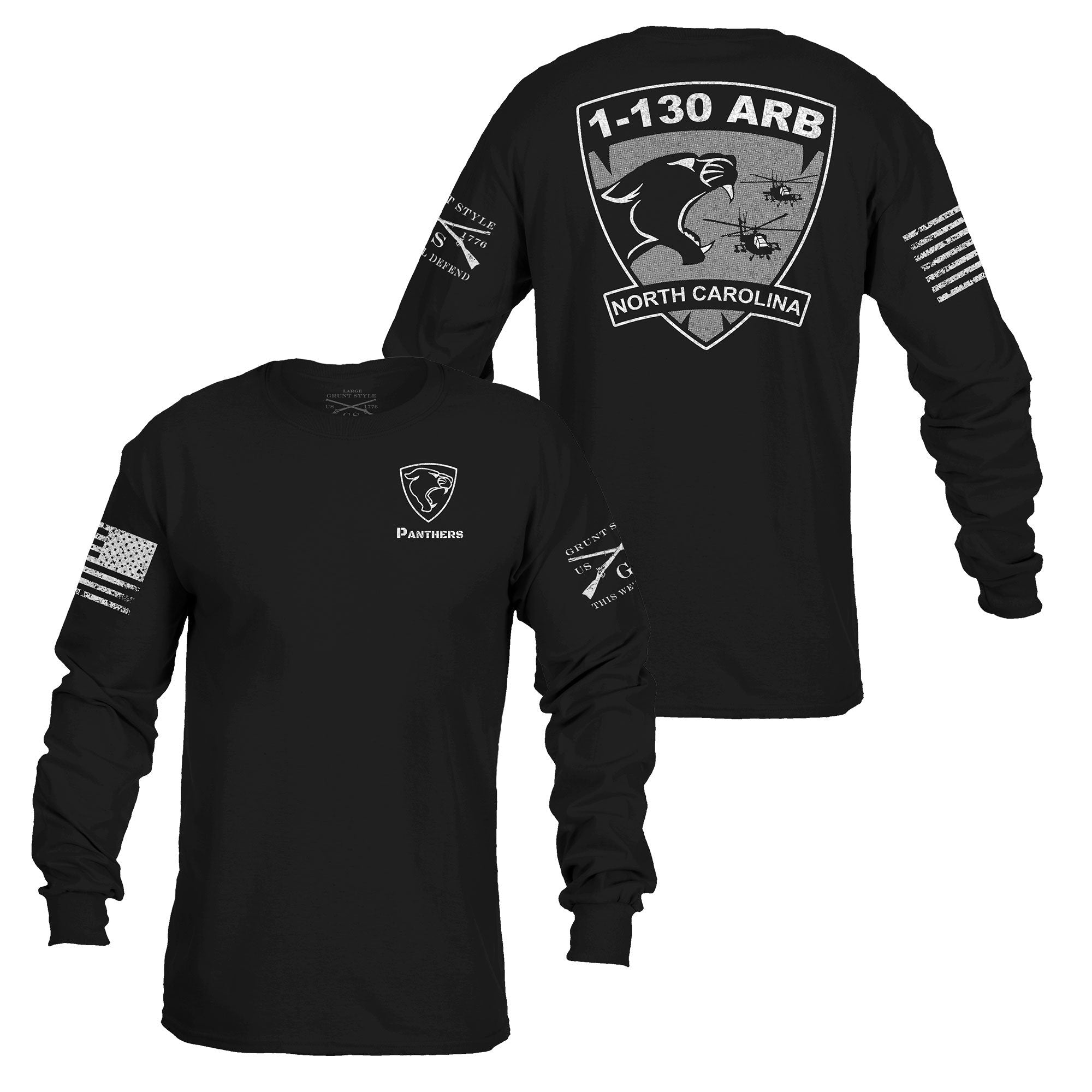 1-130 Attack Reconnaissance Battalion returned from a deployment to Afghanistan last year. These shirts were created by those in the ARB to integrate the team back together and allow their families, friends, and fellow "Panthers" to order the same shirts and show support for the organization.